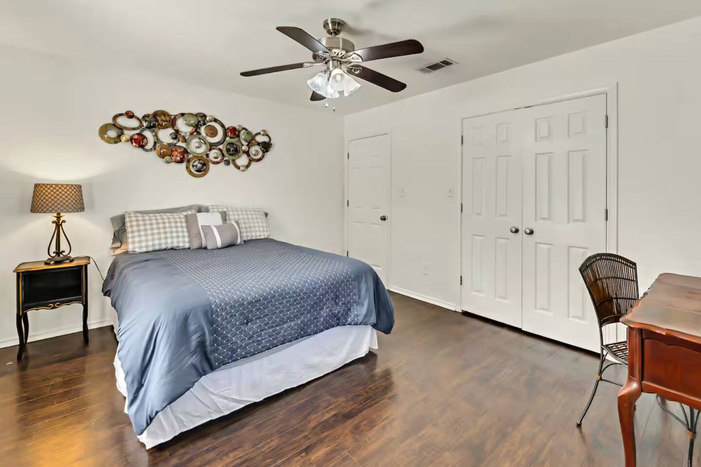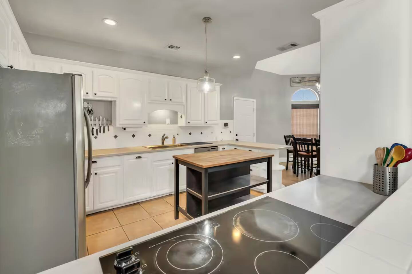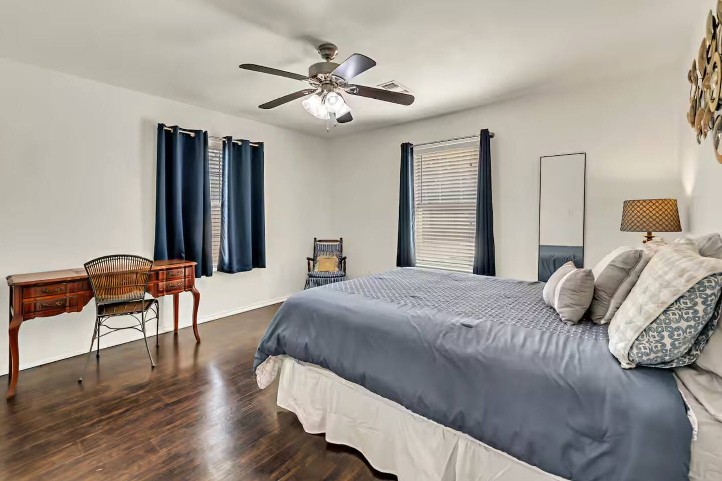 Guests have full access to the entire home during their stay, including the living room, kitchen, dining area, all reserved bedrooms, bathrooms, the laundry room (off the kitchen), the pool, hot tub, and all outdoor living areas. Self-check-in is simple with our secure keyless entry system, and your custom code will remain active for the duration of your stay. Parking is available on the property, and guests may also use street parking if they feel comfortable doing so; however, parking is not guaranteed or warranted and may vary based on city or neighborhood activity. Please note: the garage, a small locked supply closet inside the home, and the metal storage building on the lot next door are not available for guest use. The entire home and outdoor spaces are reserved exclusively for your group—no shared areas.